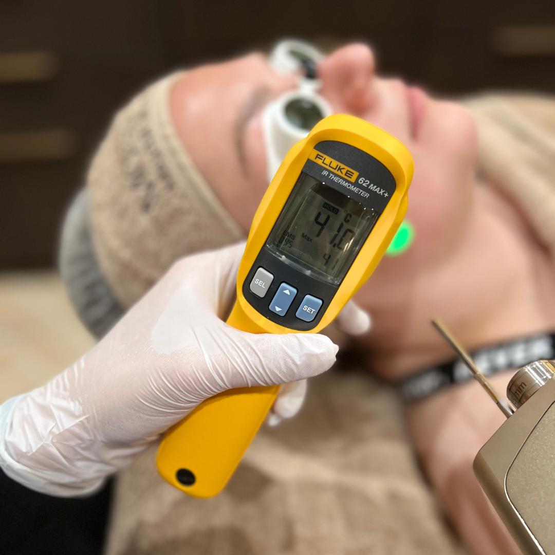 - Laser Peeling: We eindigen met een lichte laserpeeling om de huid te verfrissen en oppervlakkige imperfecties aan te pakken, zodat je meteen een stralende en strakkere huid ziet.
